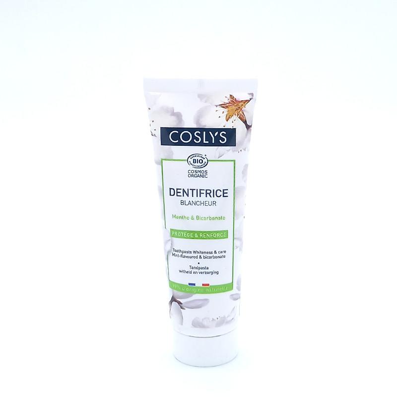 Le dentifrice blancheur préservera en douceur la blancheur de vos dents. Grâce au bicarbonate et à l'hydroxyapatite contenus dans sa formule, le Dentifrice blancheur Coslys favorise le polissage de l'émail en douceur tout en renforçant l'émail des dents.