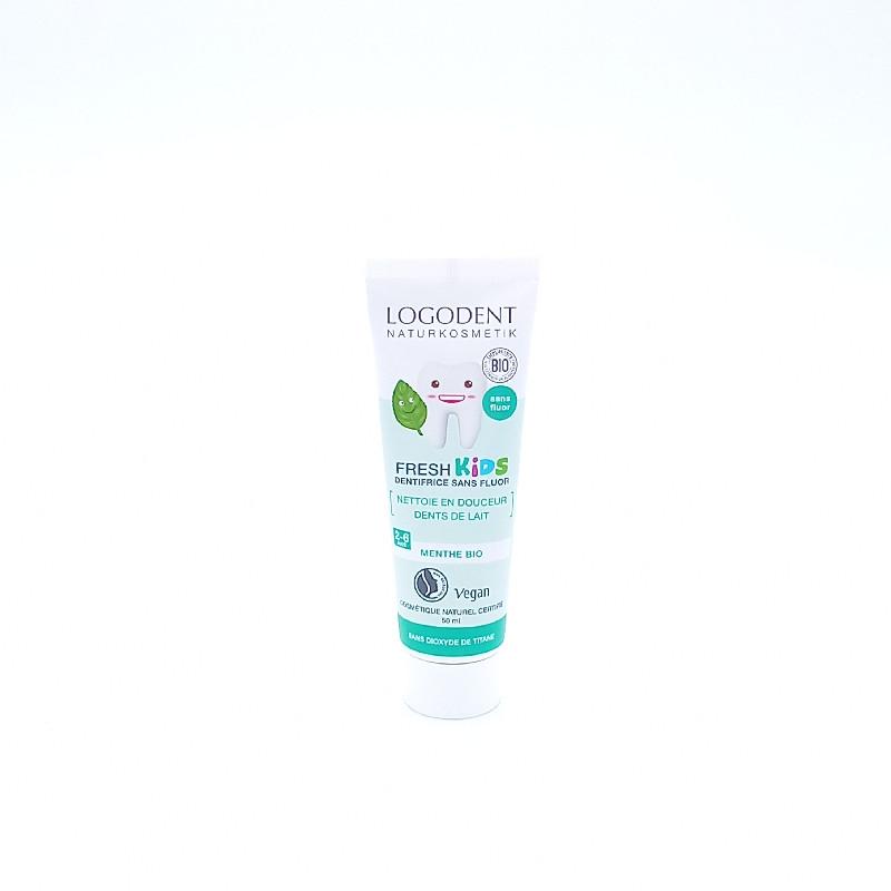 La composition du gel dentaire à la menthe Logodent garantit un nettoyage fiable et en douceur des dents qu'elles soient de lait ou définitives et l'absence d'ingrédients qui pourraient agresser l'organisme en cas d'ingestion.
